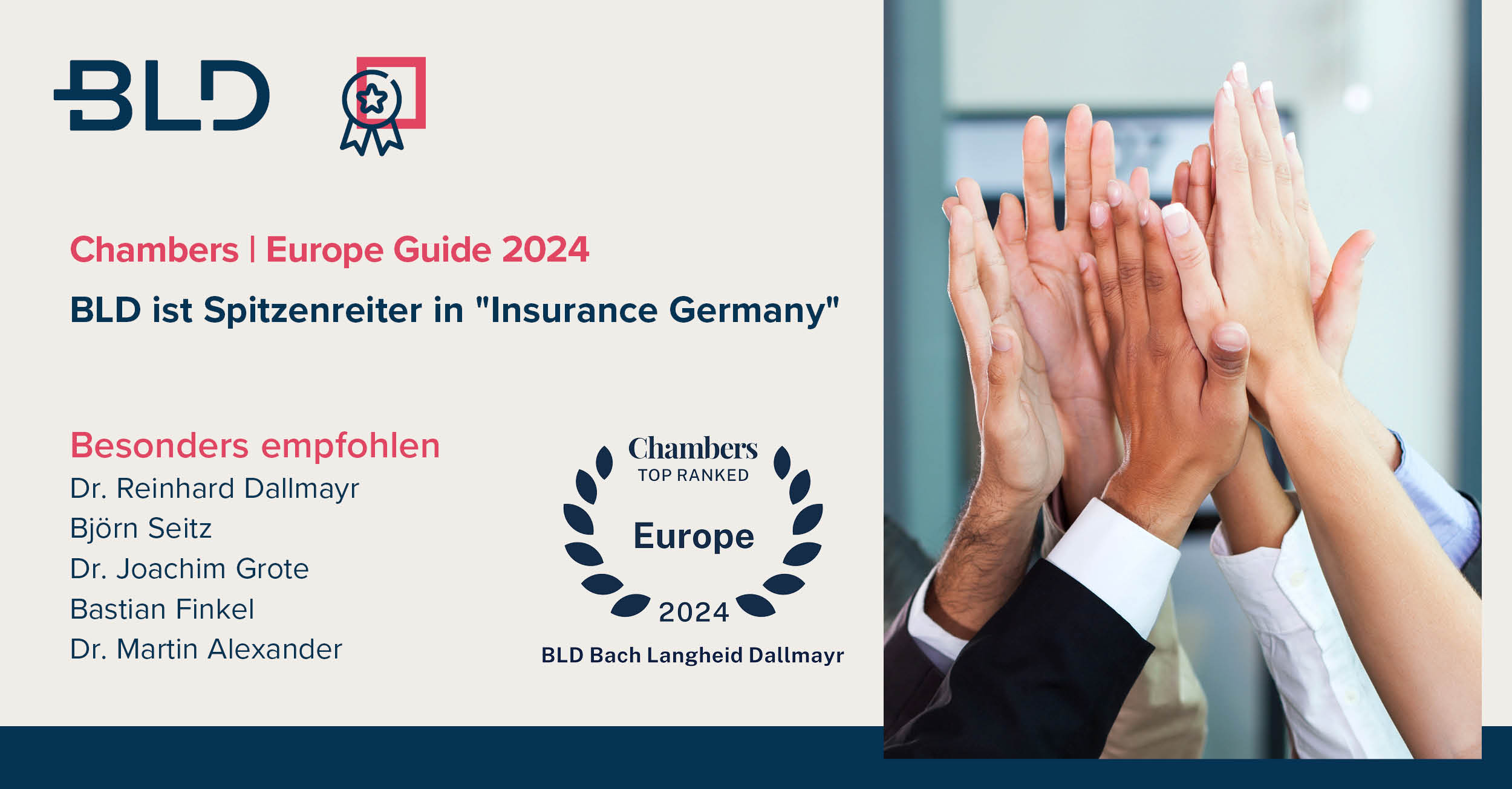 Chambers betont die „hervorragende Versicherungspraxis mit einem besonderen Schwerpunkt auf der Interessenvertretung großer nationaler und internationaler Versicherungsunternehmen“. Hervorgehoben werden die Tätigkeiten in D&O- und Produkthaftungsfällen, einschließlich globaler Produktrückrufe, und im Bereich der Cyber-Versicherung. Neben diesen schadenbezogenen Tätigkeiten betont Chambers den hervorragenden Ruf von BLD auch in den Feldern der aufsichts- und vertragsrechtlichen Beratung sowie der Produktentwicklung.