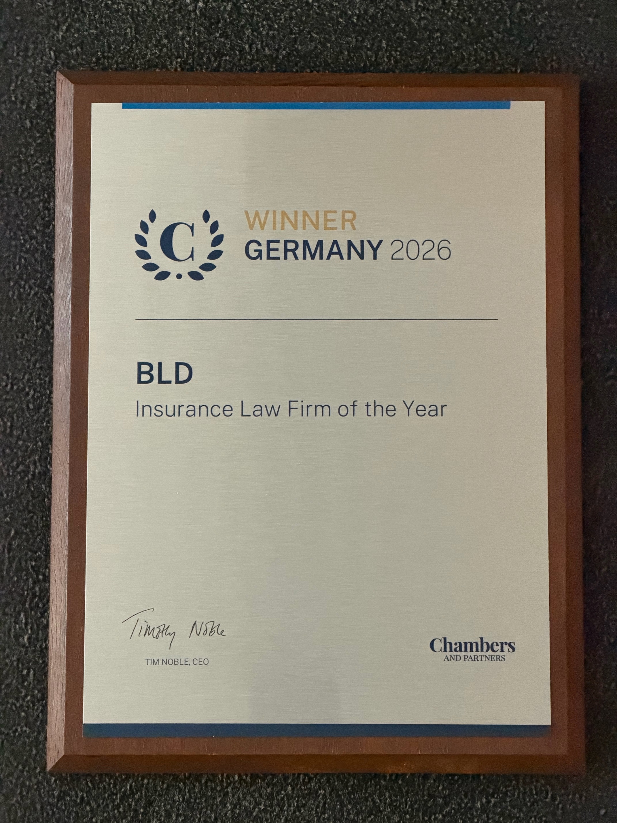 Gestern Abend fanden in München die ChambersGermanyAwards statt – BLD erhielt die höchste Auszeichnung im Bereich Insurance: Kanzlei des Jahres.